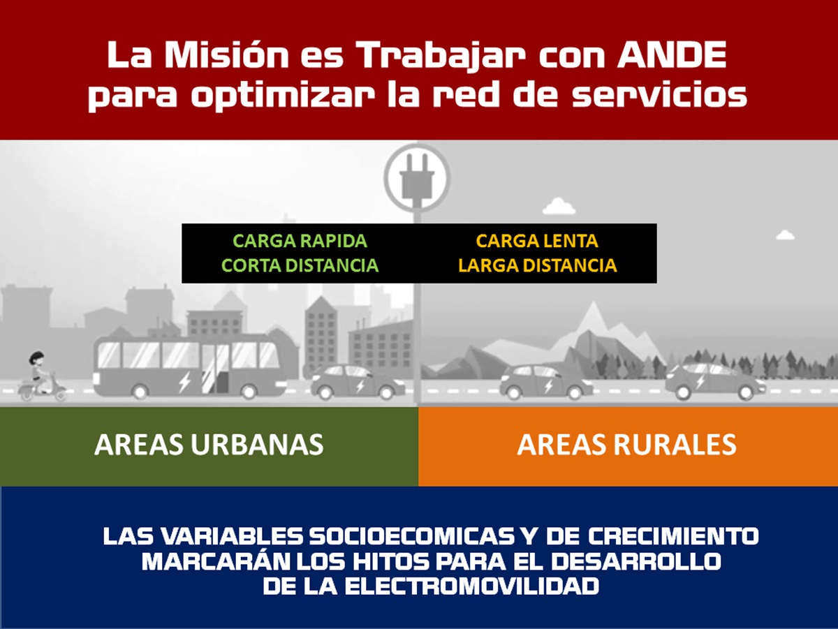 Además de trabajar de forma conjunta con el Ministerio del Ambiente y Desarrollo Sostenible MDES, se tiene el objetivo de trabajra con la ANDE y las instituciones del estado en organizar técnicamente el escenario nacional en función al crecimiento de la electromovilidad en Paraguay.